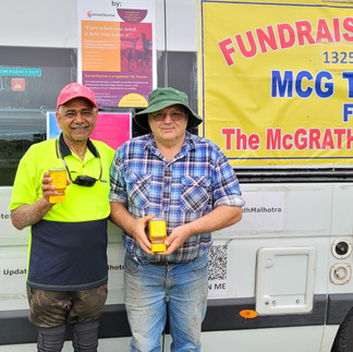 Michael and I got ready and drove to Tostaree to start the walk towards Orbost. when we reached Wombat Creek, we had a short break. Here is a family that has been producing Wombat Honey for several generations. The current owner came over to our van and gave us a couple of jars of pure honey and said, "This honey might come handy when you are low on energy on your walk.." A big thank you to the generosity of this farmer family. After a quick nap and breakfast, we continued to Newmerella Rest Area where a Food-van was selling hot/cold drinks and snacks. Once we introduced ourselves, the owners didn’t want to take any money for coffee/tea and cakes.